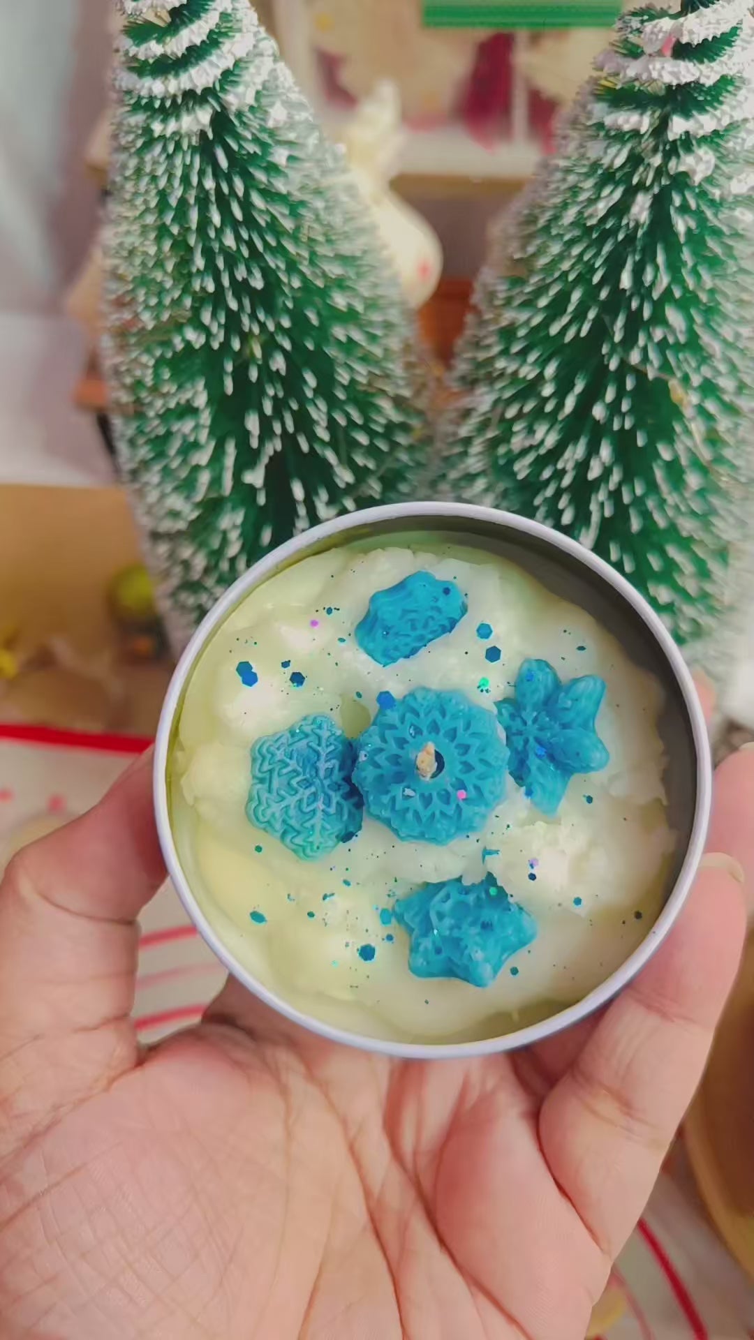 ✨ Finish: Whipped Wax Top with Snowflake Embeds