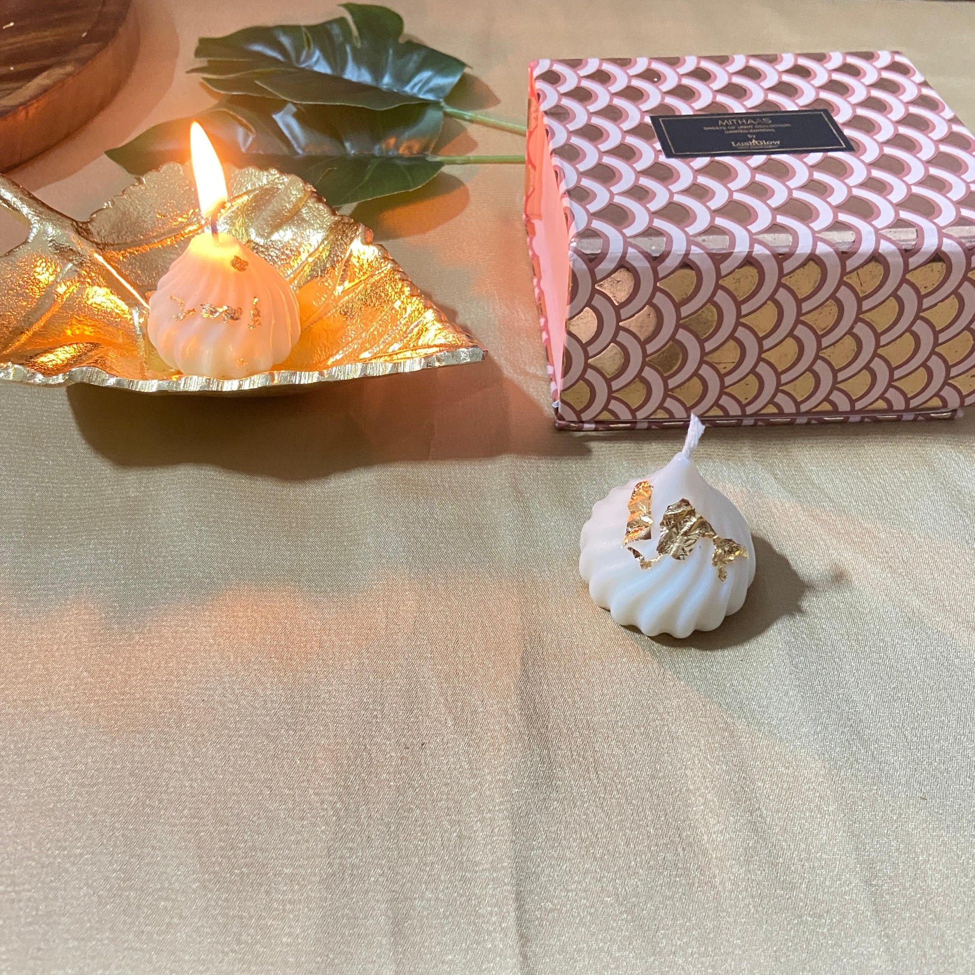 Infused with mithai-inspired fragrances, each candle brings warmth, nostalgia, and luxury to your celebrations. Perfect as a Ganesh Chaturthi offering, Diwali décor, or a thoughtful festive gift, this set of five captures the true spirit of tradition with a modern, elegant twist.